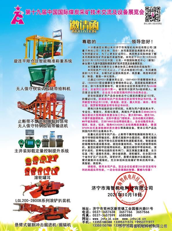 邀請(qǐng)函-第十九屆中國(guó)國(guó)際煤炭采礦技術(shù)交流及設(shè)備展覽會(huì)